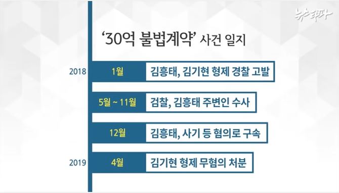 경찰이 문제의 30억 계약사건을 수사 중인 때, 검찰은 고발인의 뒤를 무차별적으로 수사하여 결국, 김흥태은 사기 등의 혐의로 구속되고, 핵심 피의자 김기현 형제는 무혐의 처리함.