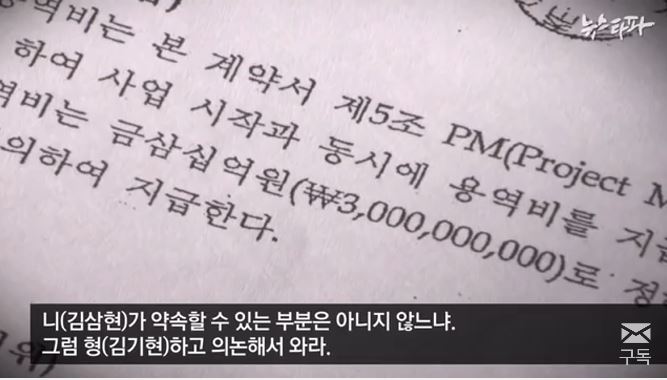 김기현 전 울산시장의 동생과 건설업자 김흥태 씨의 30억원 용역계약.