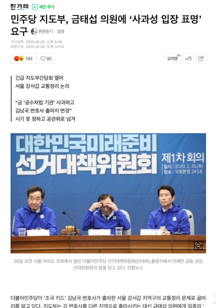 | “금태섭, 김남국에 ‘조국’ 낙인…더티플레이” 김남국, 기자회견 갑자기 취소. 출마 포기? (0) | 2020.02.18 |